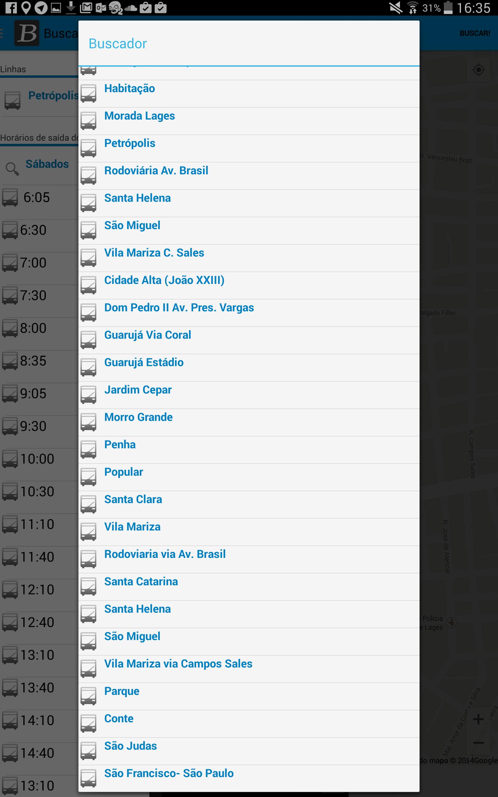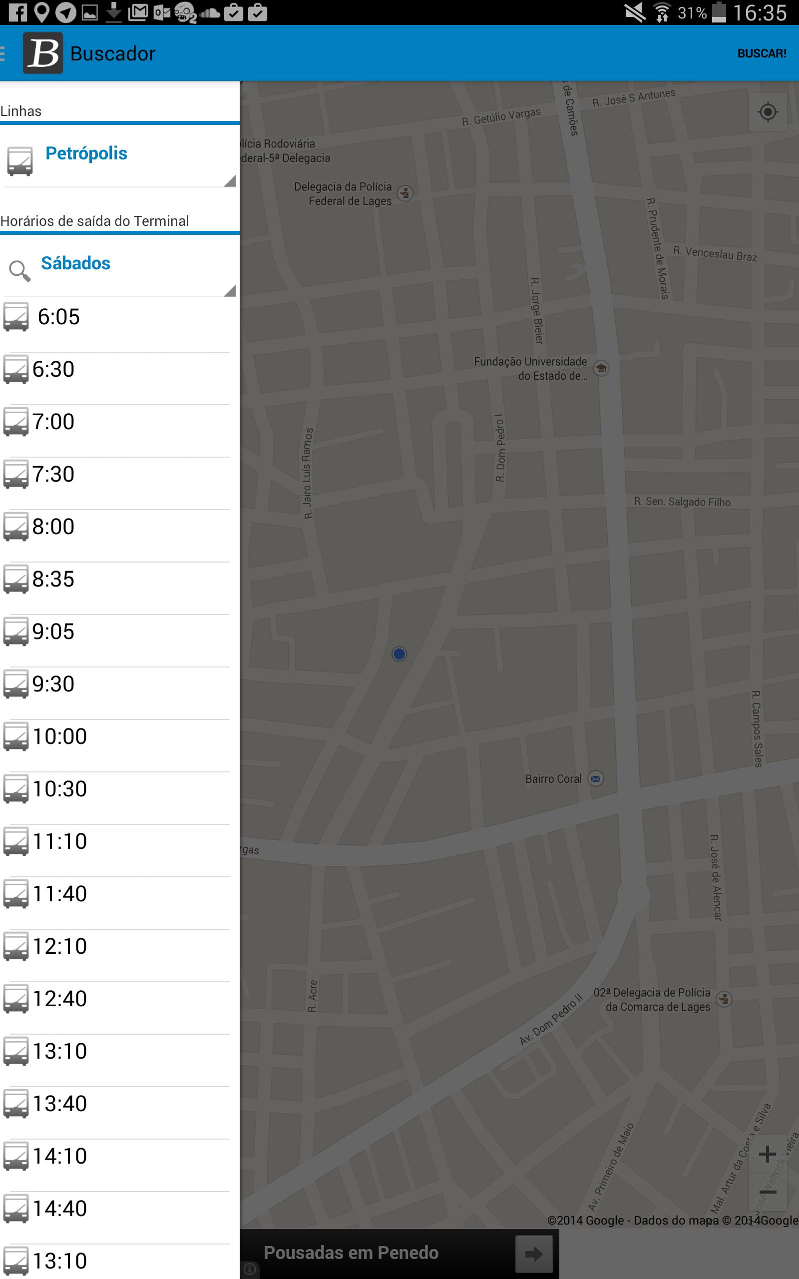 การติดตามแอพของรถโดยสารและเวลาสอบถามสำหรับเมือง Lages - SC